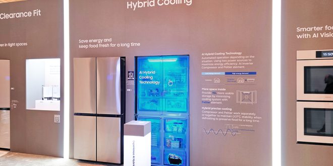 Power: BLUETTI Charger cepat, ESR Qi2 charger dingin pake fan. Smart appliance: Samsung AI fridge kenal makanan kadaluarsa, wan AIChef masak otomatis.